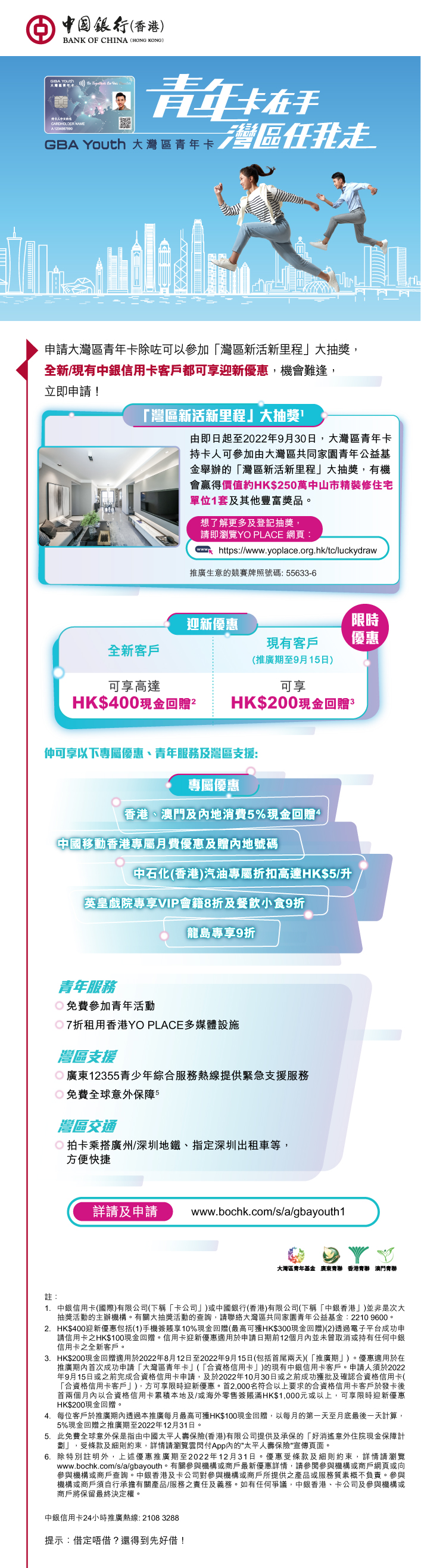 以上產品/服務/優惠由中國銀行(香港)有限公司及其集團成員中銀信用卡(國際)有限公司提供 |