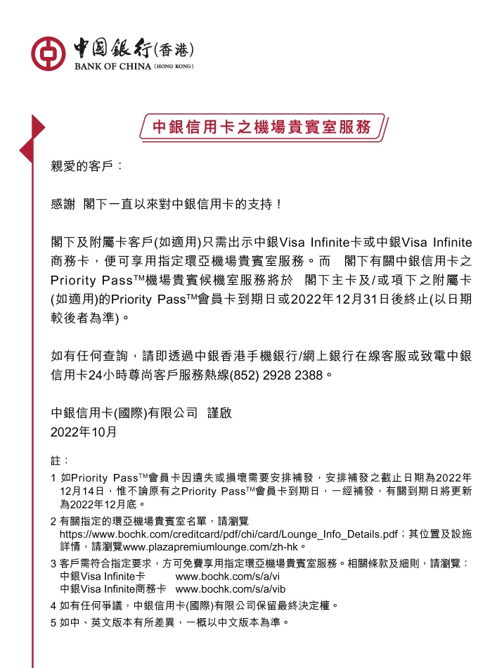 切勿透過任何電子電郵提供的超連結登入『中銀信用卡網上服務』。本公司不會透過電郵方式向客戶索取戶口號碼、密碼或任何個人資料。請勿將您的登入密碼向任何人透露﹝包括本公司職員﹞,並緊記定時作出修改。每次使用網上服務完畢後,請按登出鍵離開。