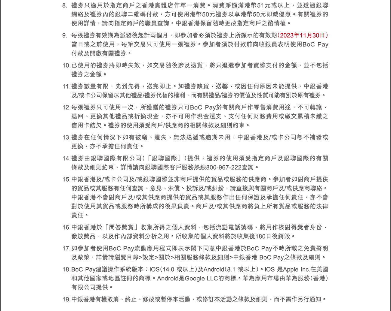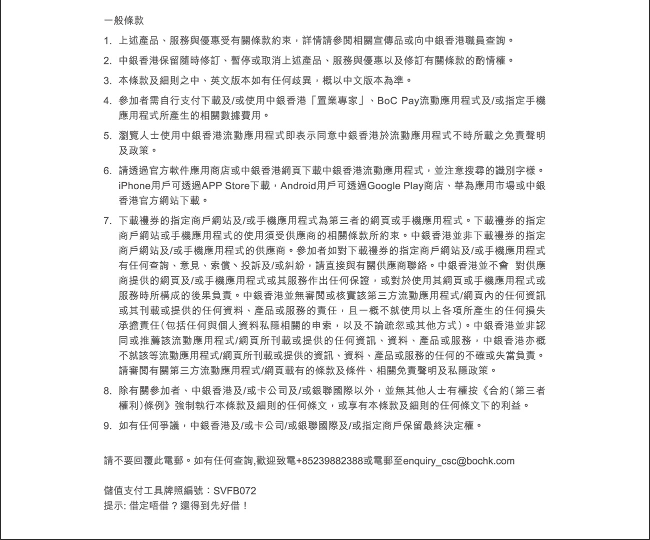 If you do not wish to receive future promotional emails from BOCHK and BOC Credit Card (if applicable), please click