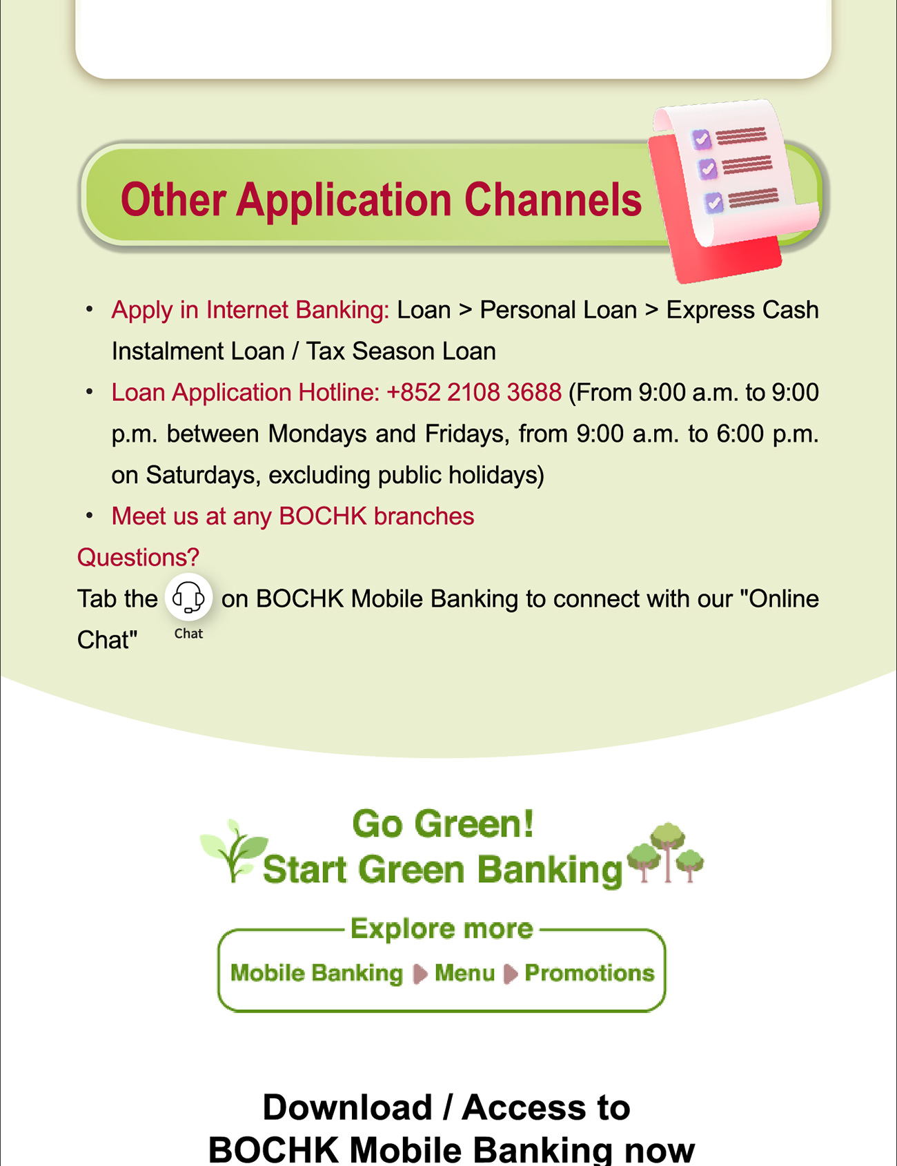 If you do not wish to receive future promotional emails from BOCHK and BOC Credit Card (if applicable), please click