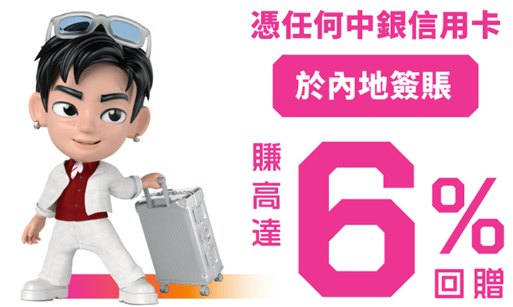 - 中銀Cheers Card優惠須受條款及細則約束,詳情:www.bochk.com/s/a/cheerscard。