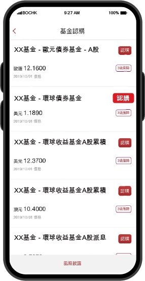 中銀香港不單提供專業的基金服務,同時亦為客戶帶來簡單易用的手機銀行交易平台。 手機銀行基金交易平台,助您一指掌控基金走勢!
