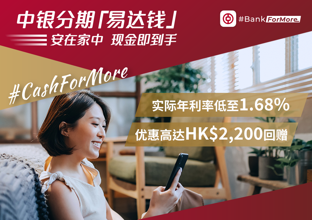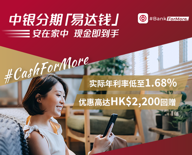 申请方法: 登入www.bochk.com | +852 2108 3688#