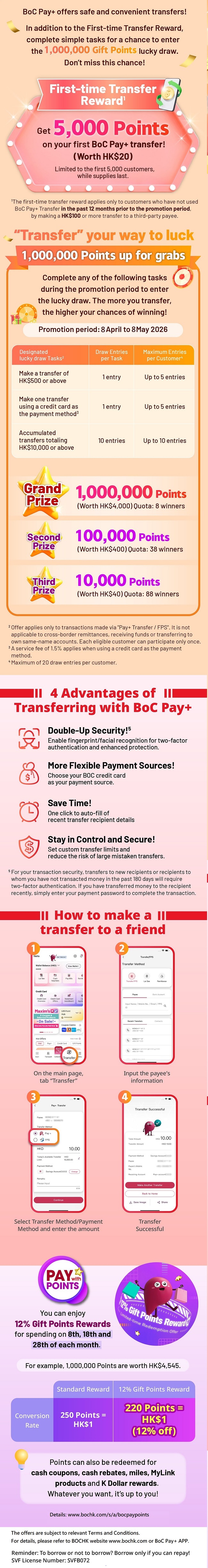 > Make transfer with BoC Pay+ to enter the 1,000,000 Points Grand Draw