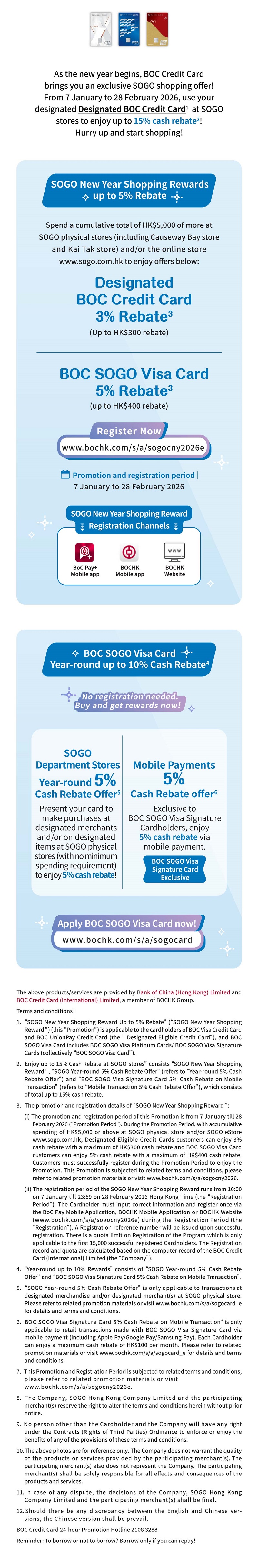 For BOC SOGO Visa Card "Year-round up to 10% Rewards", please click here for offer details and terms and conditions.
