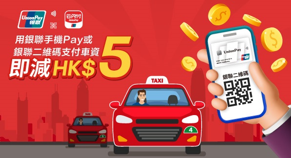 UnionPay card users enjoy an instant HK$5 discount when paying taxi fares by designated methods.