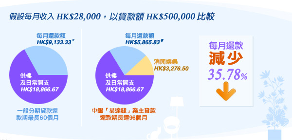 例子只作模擬及參考用途,實際可減少的每月還款額將根據個別客戶的情況而定。