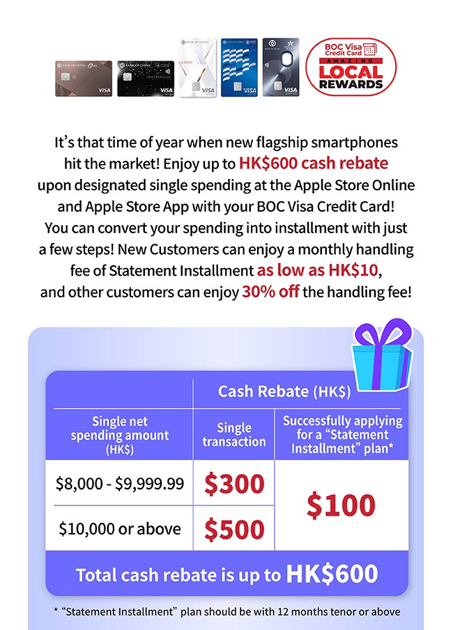 > BOC Visa Credit Card | Up to HK$600 Cash Rebate at the Apple Store Online