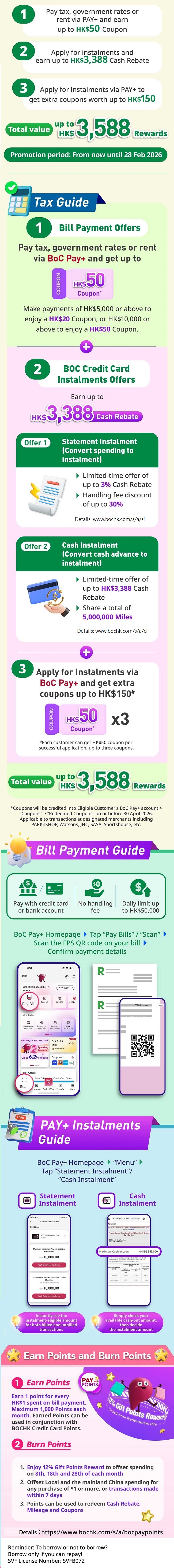> Earn up to HK$3,588 in rewards when you pay tax and successfully apply for instalments with BoC Pay+!