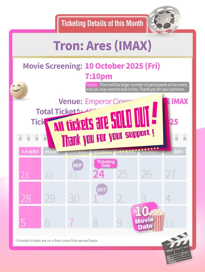 *Ticket price for movie/concert tickets is HK$0. Customers are required to pay the ticketing platform handling fee of HK$10 per ticket using the BOC Chill Card.