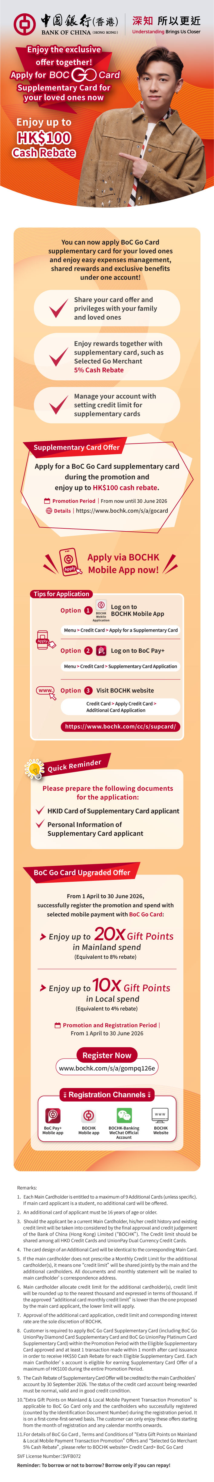 > 【BOC Go Card】Apply for Supplementary Card and Enjoy up to HK$100 Cash Rebate