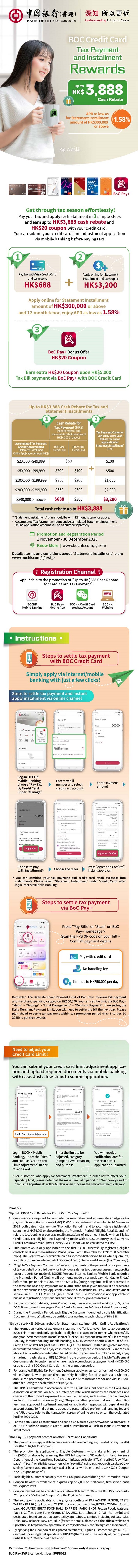 - Terms and Conditions for "Up to HK$688 Cash Rebate for Credit Card Tax Payment"