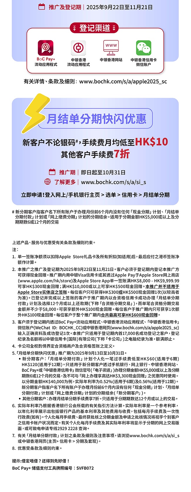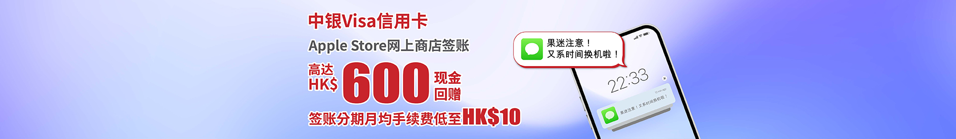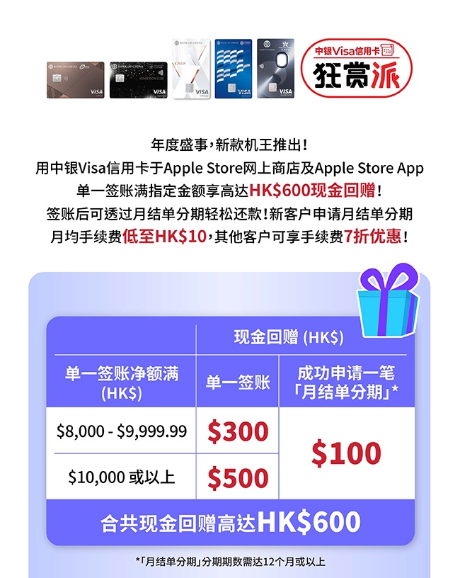 > 中银Visa信用卡 | Apple Store网店高达HK$600现金回赠