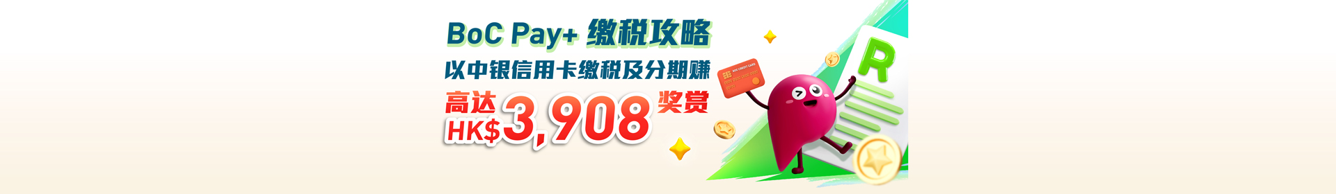 > 于BoC Pay+ 以中银信用卡缴税及分期赚高达港币3,908奖赏!