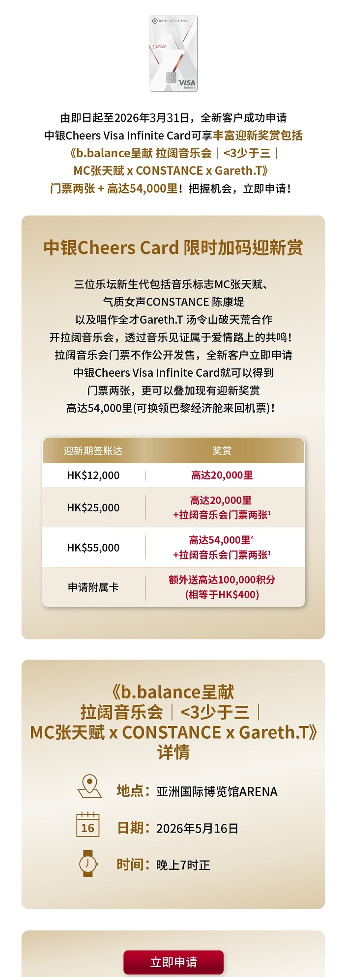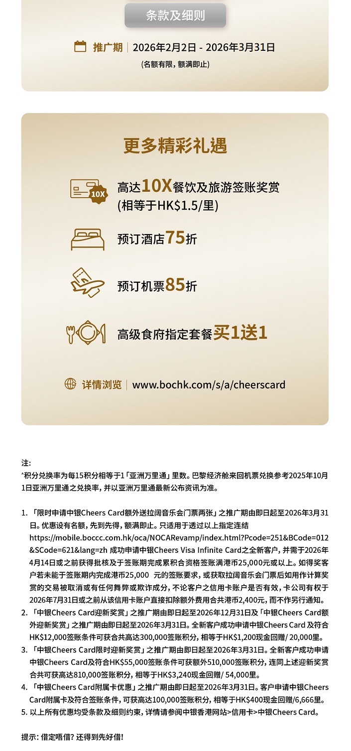 > 限时申请中银Cheers Card送拉阔音乐会门票两张