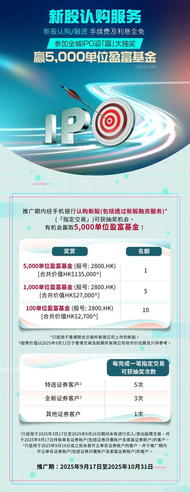 * 由2025年10月1日至2025年12月31日内(「推广期」)开始招股的新股,豁免新股认购手续费港币100元。