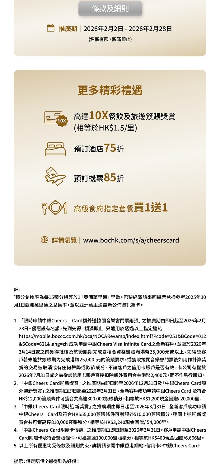 > 限時申請中銀Cheers Card送拉闊音樂會門票兩張