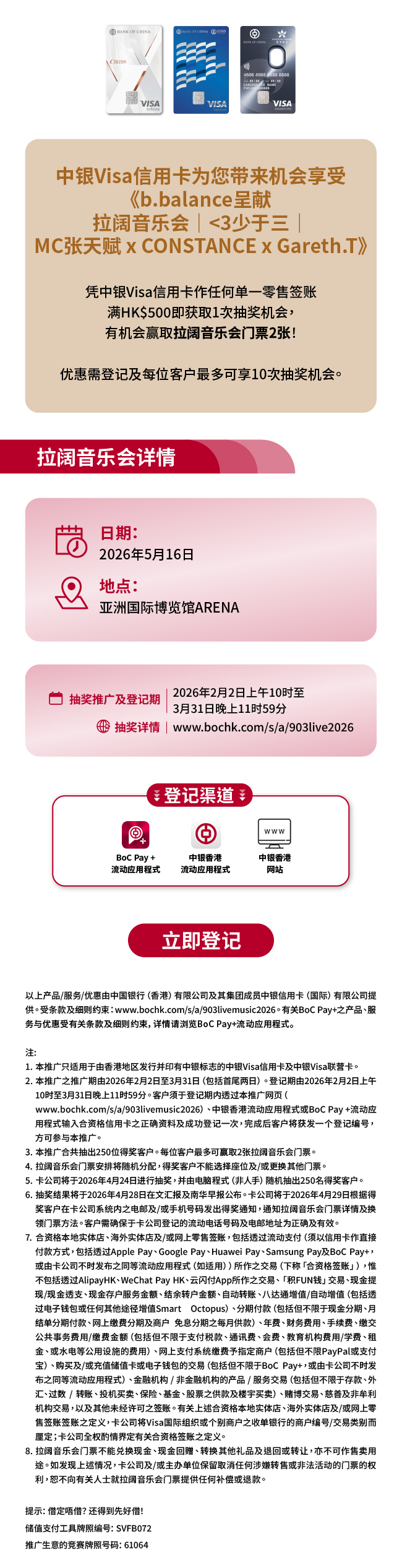> 中银Visa信用卡拉阔音乐会抽奖活动