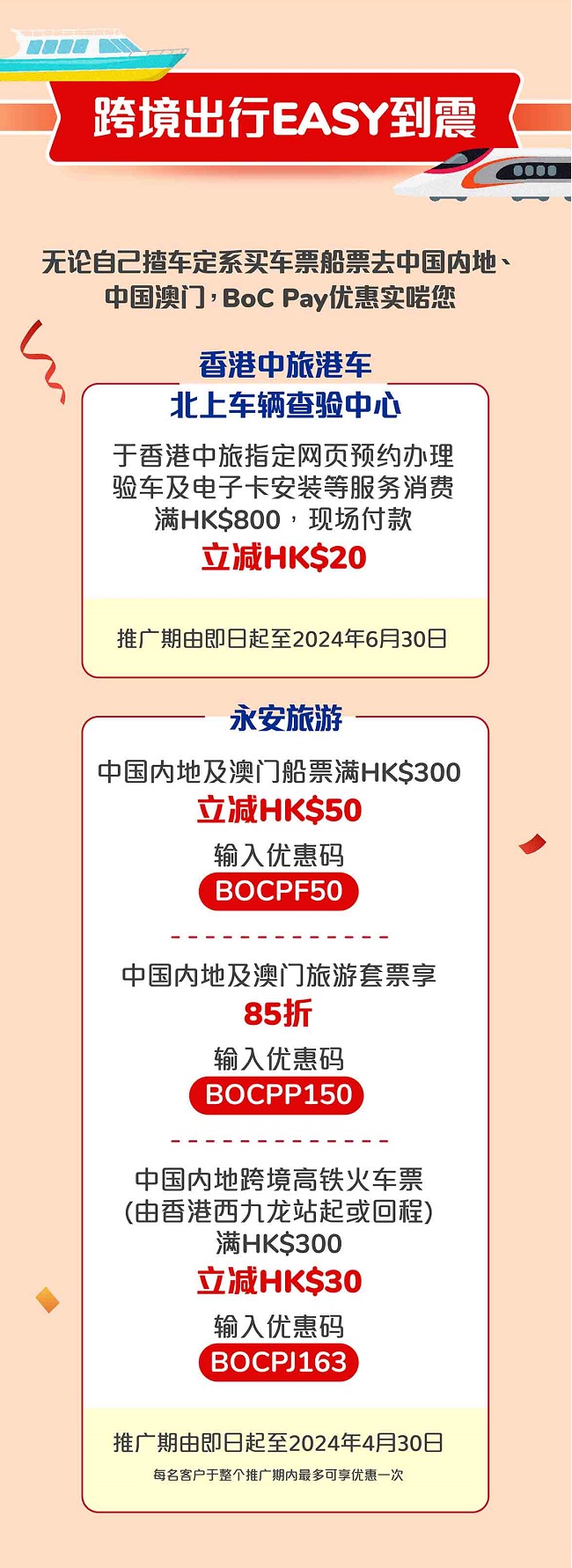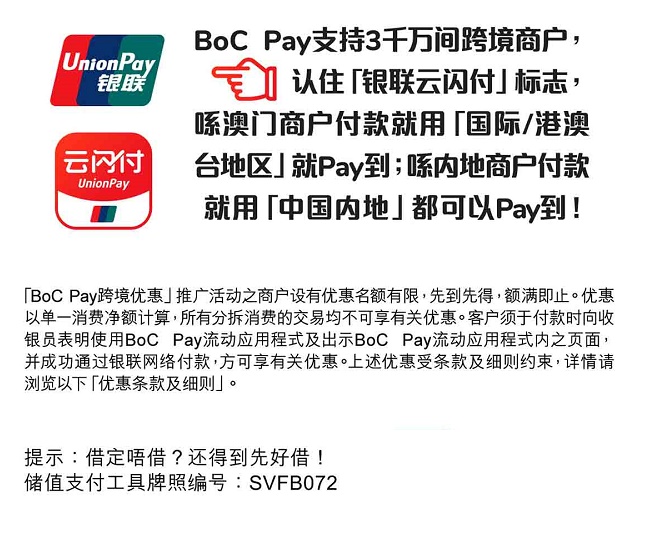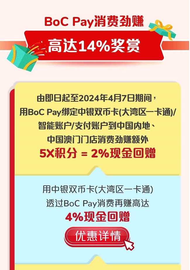> 内地、澳门吃喝玩乐 BoC Pay消费劲赚高达14%奖赏