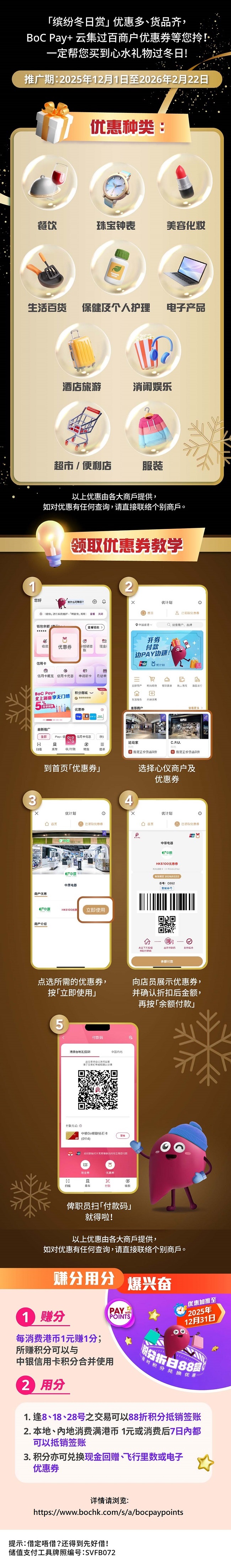 > 缤纷冬日赏 | BoC Pay+ 云集过百商户优惠券 !
