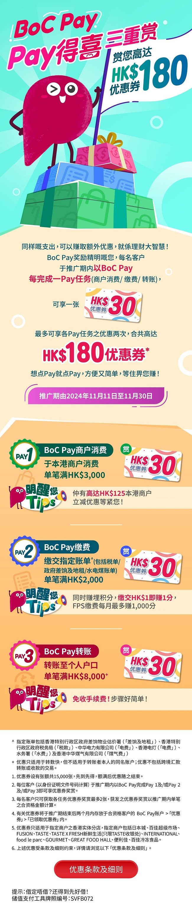 > Pay得喜三重赏 赏您高达HK$180优惠券