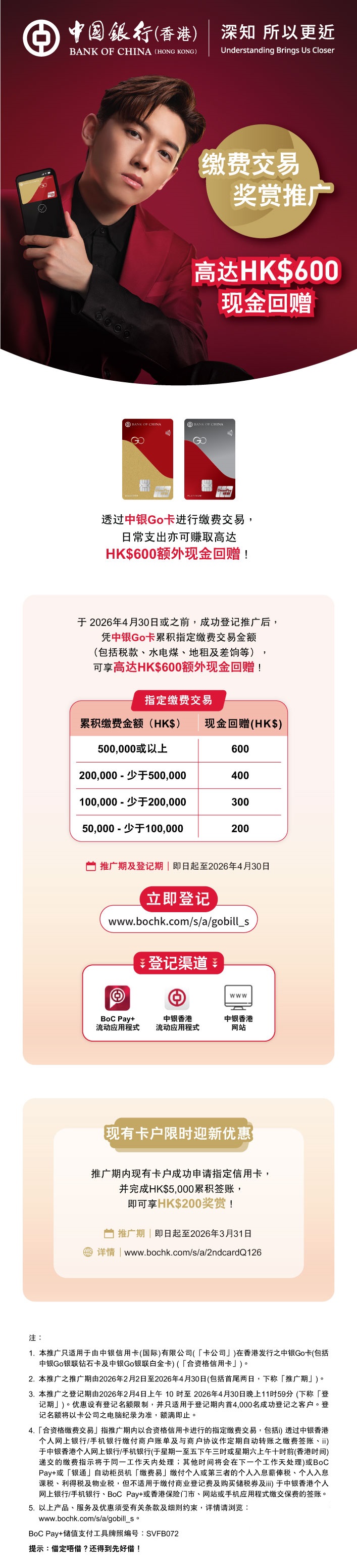 > 【中银Go卡】缴费交易赚高达HK$600现金回赠!