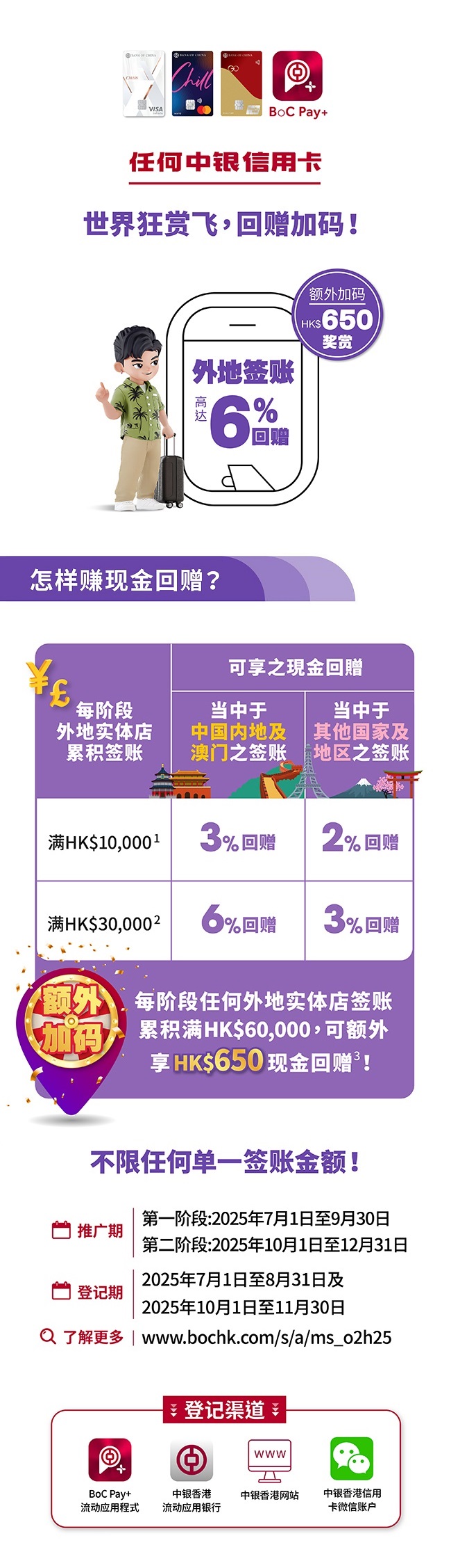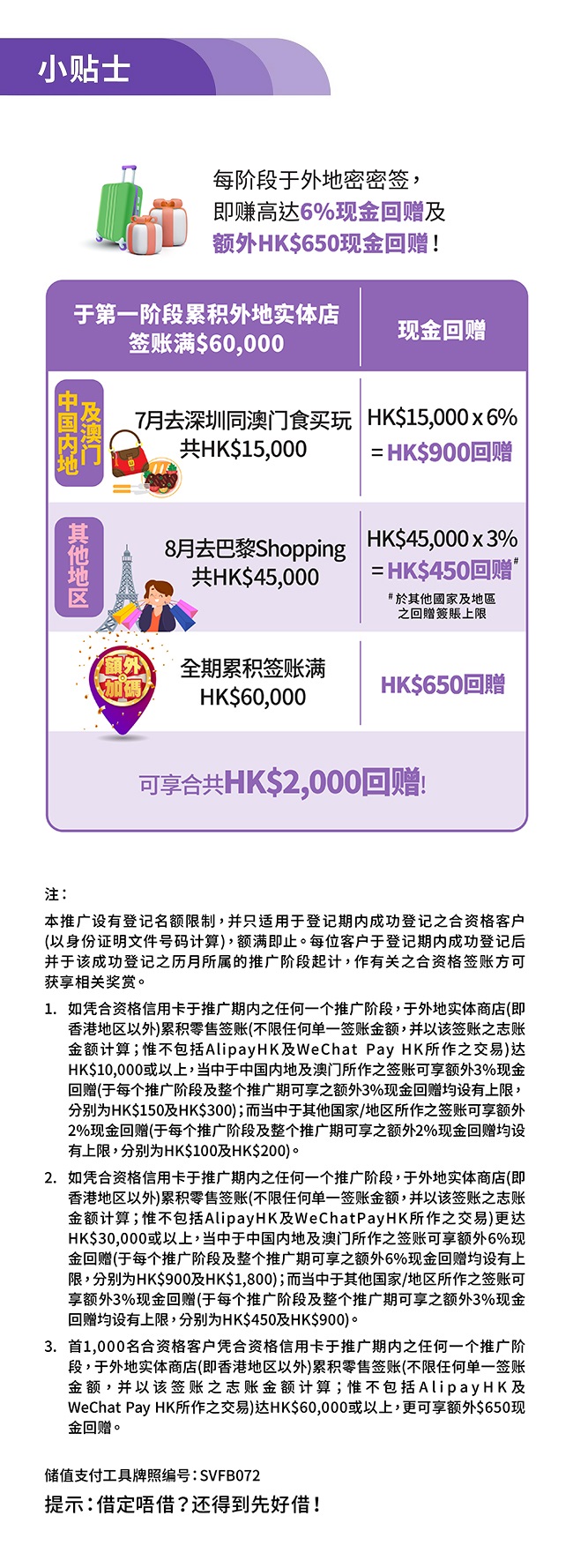 > 继续「狂赏飞」!外地签账赚高达6%回赠及HK$650奖赏!