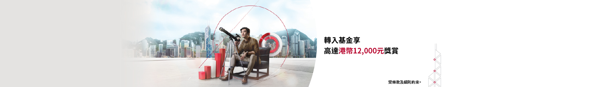 優惠由2025年7月2日至12月31日。優惠並不適用於1)貨幣市場基金、2)於同一基金公司轉換基金的交易、3)於網上銀行及手機銀行進行之跨基金公司的轉換基金交易及 4)透過「月供基金計劃」認購的基金。於網上銀行及手機銀行進行之跨基金公司的轉換基金交易按基金認購費可獲減免,基金認購費4.5%或以上,減收3%;基金認購費4.5%以下,減收1%。優惠受其他條款約束,如有查詢,請致電本行個人客戶服務熱線+852 3988 2388 或親臨本行任何一家分行。