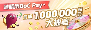 轉賬用BoC Pay+ 即可參加1,000,000積分大抽獎