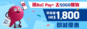 用BoC Pay+ 去SOGO購物享高達HK$1,800即減優惠!