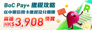 Pay tax and apply for installment with BoC Pay+ & BOC Credit Card! Earn Up to HK$3,908 Rewards! | BoC Pay+|~|/en/creditcard/promotions/offers/bocpayplustaxpayment.html