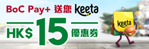 用BoC Pay+ 逢星期五、六、日乘搭巴士、電車及天星小輪等滿港幣3元即減港幣2元!