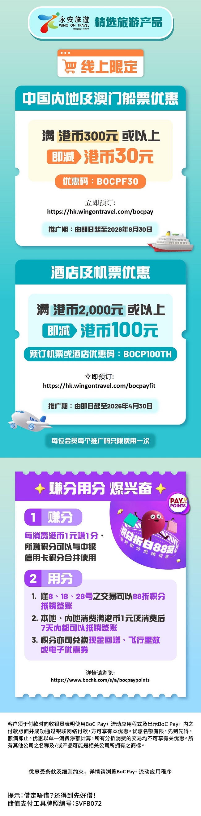 > BoC Pay+ 旅遊優惠|機票、酒店或中國內地及澳門船票都有得減!