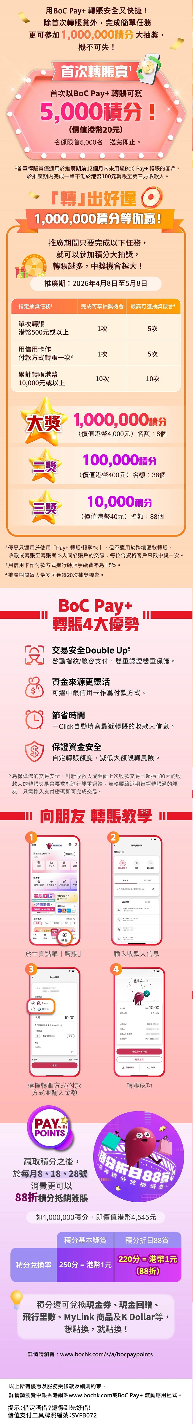 > 轉賬用BoC Pay+ 即可參加1,000,000積分大抽獎