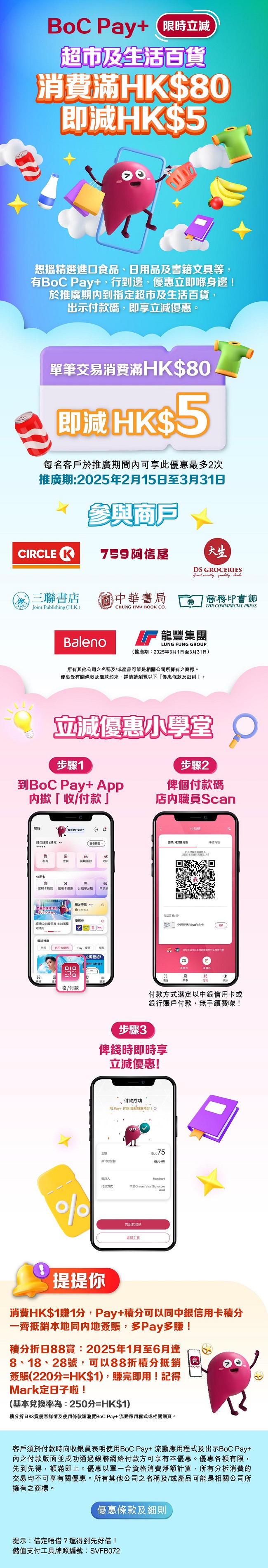 > BoC Pay+ 超巿及生活百貨限時立減!
