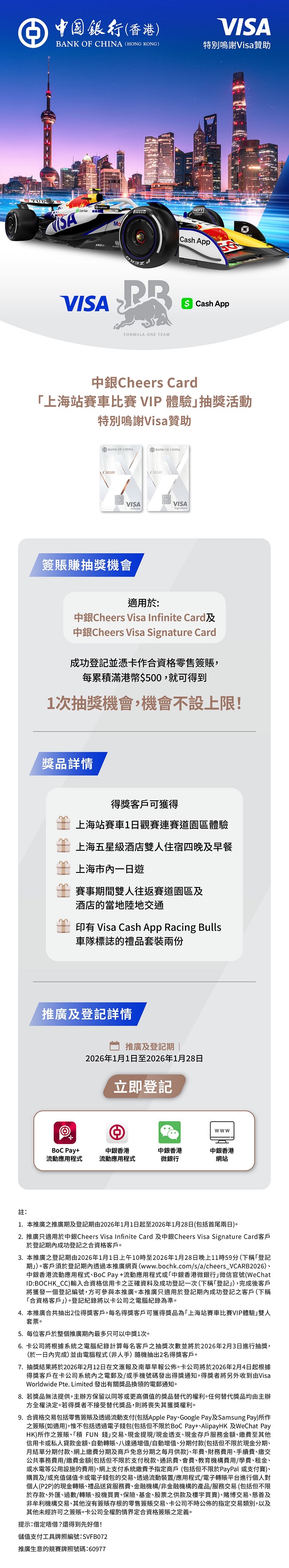 > 中銀Cheers Card「上海站賽車比賽VIP體驗」抽獎活動