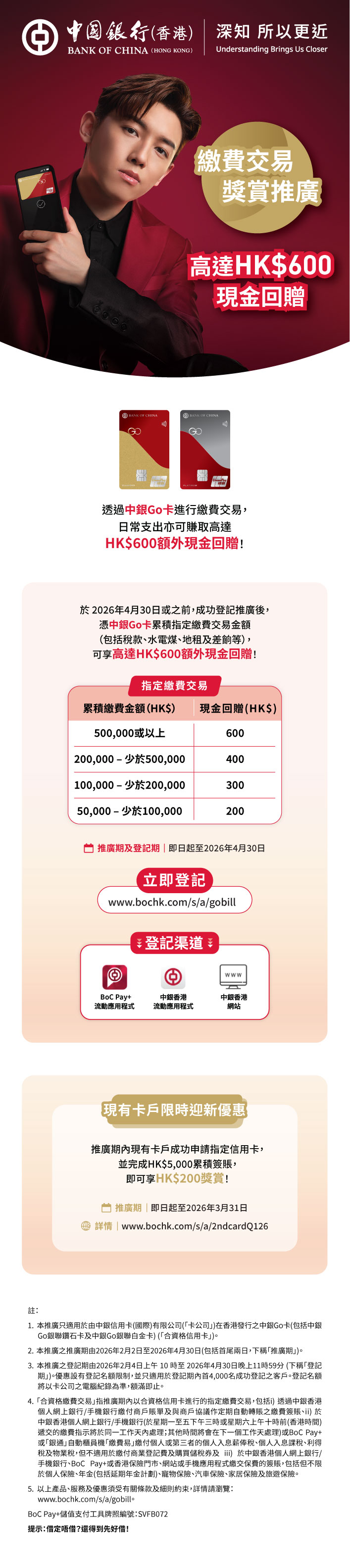 > 【中銀Go卡】繳費交易賺高達HK$600現金回贈!