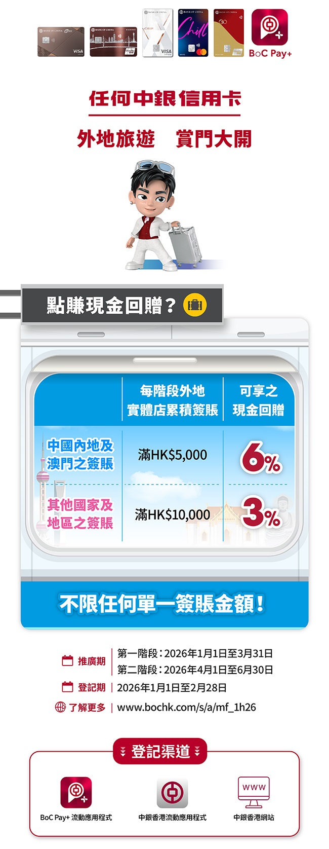 > 「狂賞飛」!外地簽賬賺高達6%回贈!