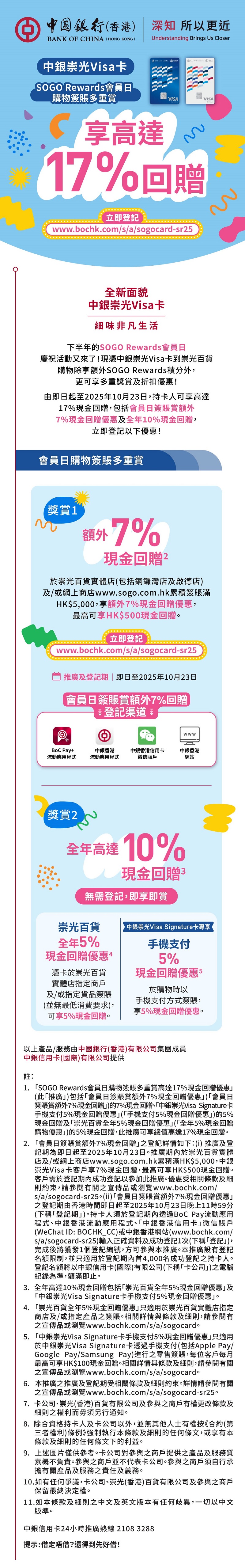 有關「會員日簽賬賞額外7%回贈」條款及細則,請