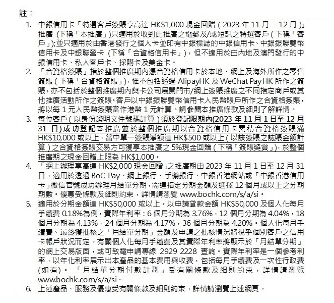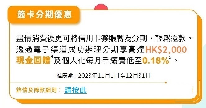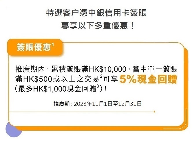 > 特選客戶簽賬享高達HK$1,000現金回贈